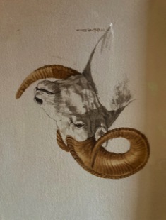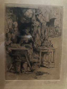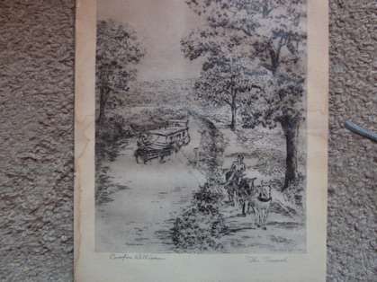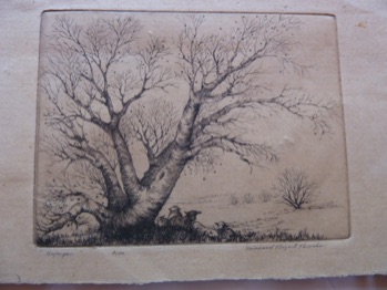 Lambs Under Tree "Reforyen?" pen ink Bryant Brooks numbered