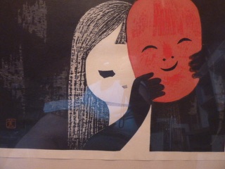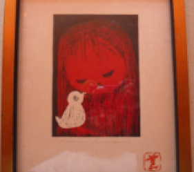Red Girl with bird Japanese stamp Knorn Kavoron?