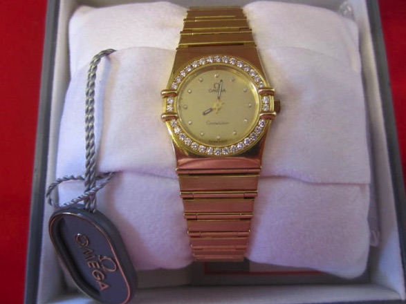 18K yellow gold Lady's Omega Constellation Watch with diamond bezel and diamond dial with 46 round brilliant cut diamonds totalling approximately 0.40 carats